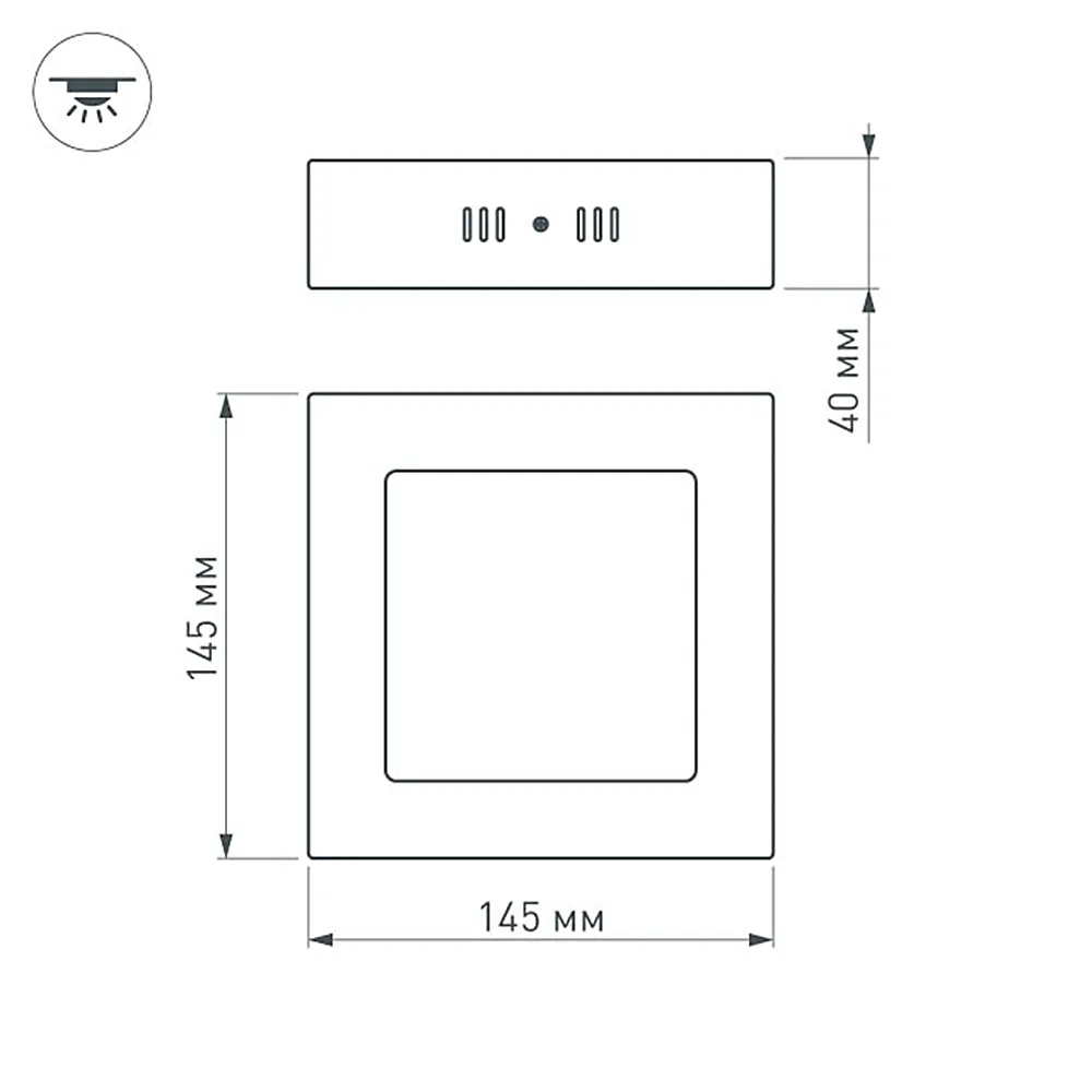 Накладная квадратная панель 9Вт, цвет ТЁПЛЫЙ БЕЛЫЙ 3000K / 570 лм / 120°/ CRI(Ra)>80. Размер 145x145x40мм. Питание от сети AC 100-240V, драйвер в комплекте (арт.019618, 18-36V, 300mA, 9W).