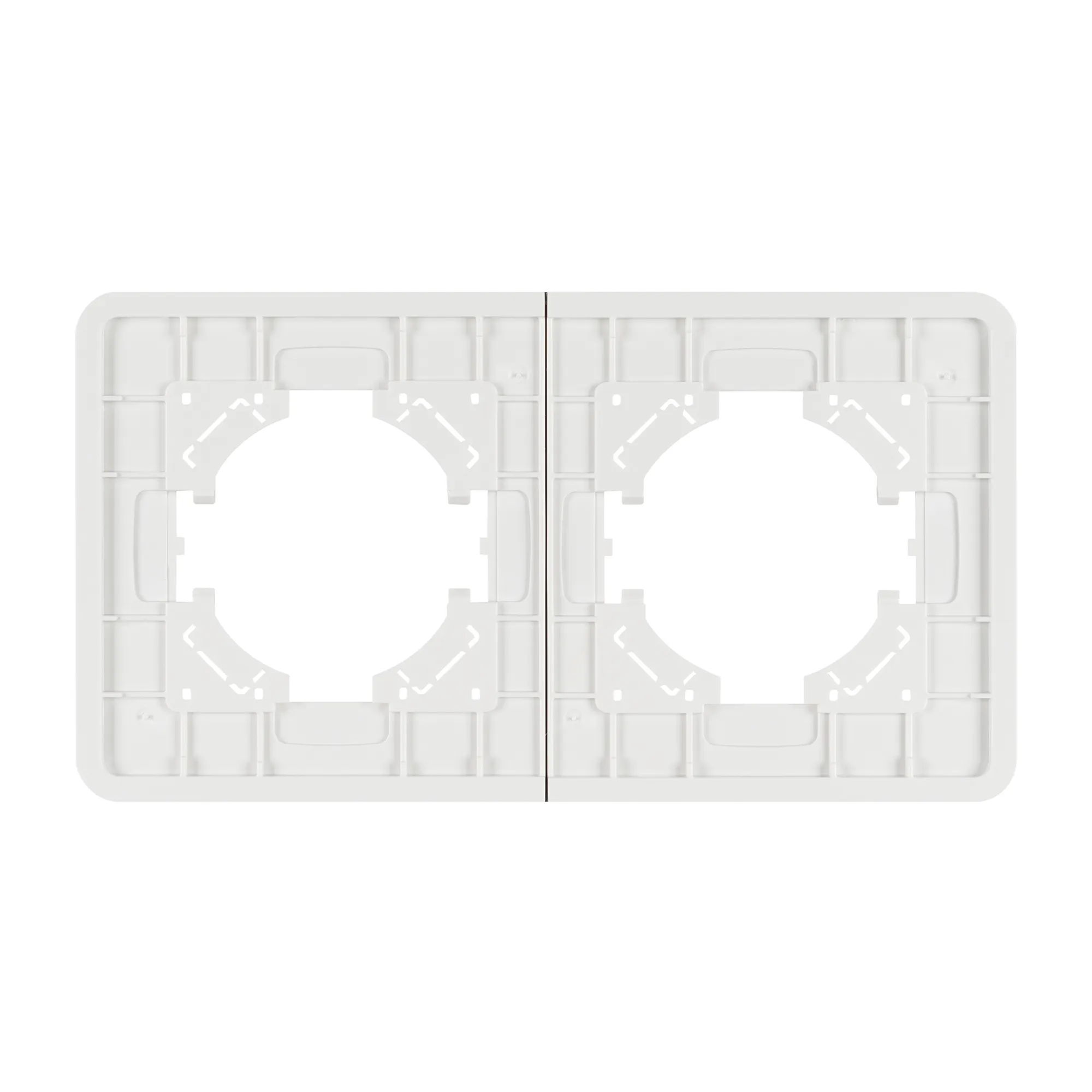 Рамка алюминиевая на 2 поста, под встраиваемый механизм. Цвет - серебристый. Уровень герметичности IP20. Ориентация монтажа - горизонтальная (основным ориентиром служат посадочные выступы для накладки механизма).