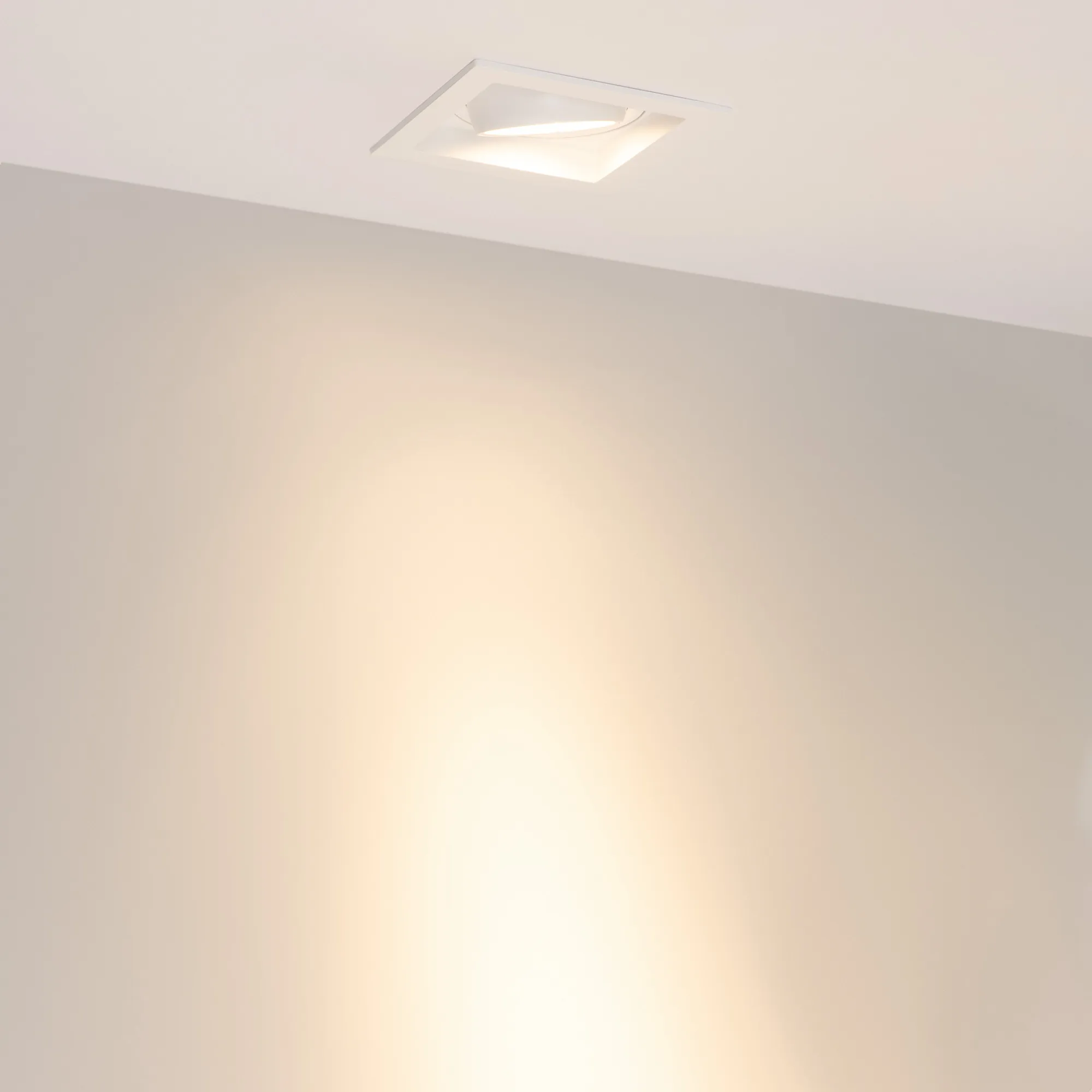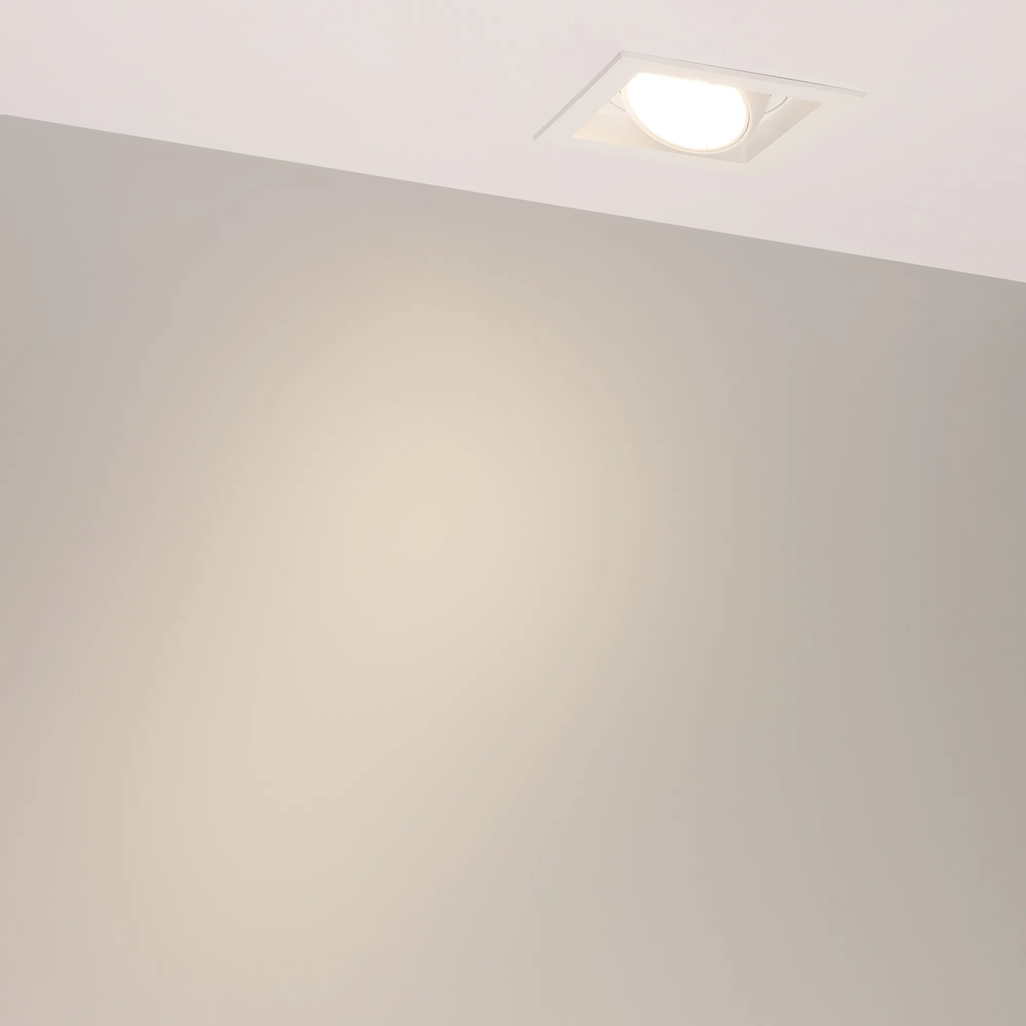 Встраиваемый карданный светильник. Мощность 20 Вт, св. поток 2067 лм, 103 лм/Вт, тёплый 3000 K, CRI>92, угол 20°, напряжение питания 230 В. Белый корпус из алюминия, белая вставка, степень защиты IP20. Размер: длина 117 мм, ширина 117 мм, высота 105 мм. Монтаж встраиваемый, установочное отверстие: длина 95 мм, ширина 95 мм. Драйвер 24-42 В, 500 мА, пульсация <2%.