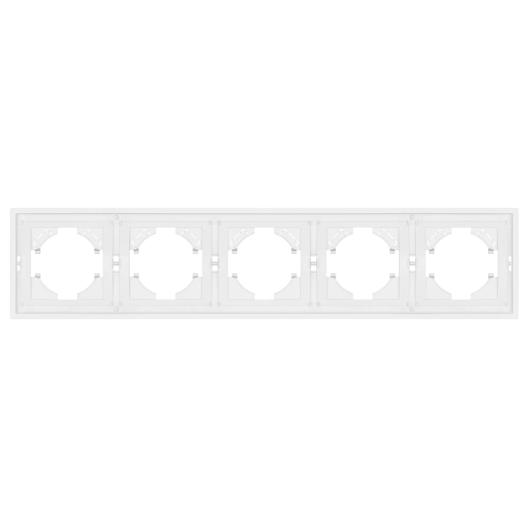 Рамка пластиковая на 5 постов, под встраиваемый механизм. Цвет - белый. Уровень герметичности IP20. Ориентация монтажа горизонтальная.