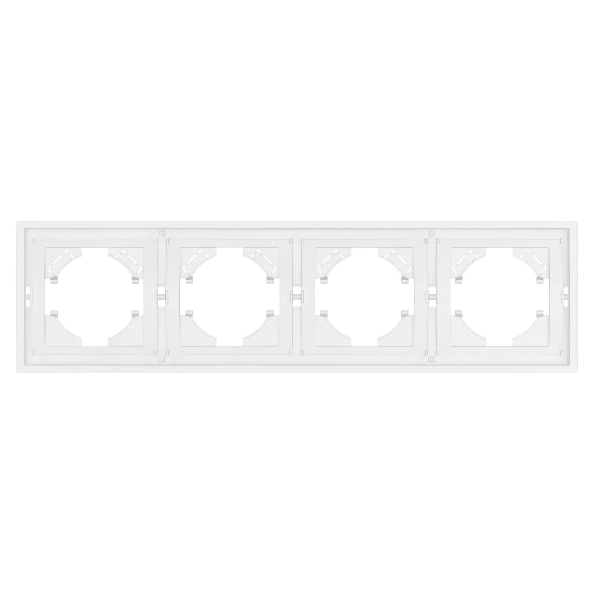 Рамка пластиковая на 4 поста, под встраиваемый механизм. Цвет - матовый белый, с Soft-Touch покрытием. Уровень герметичности IP20. Ориентация монтажа горизонтальная.